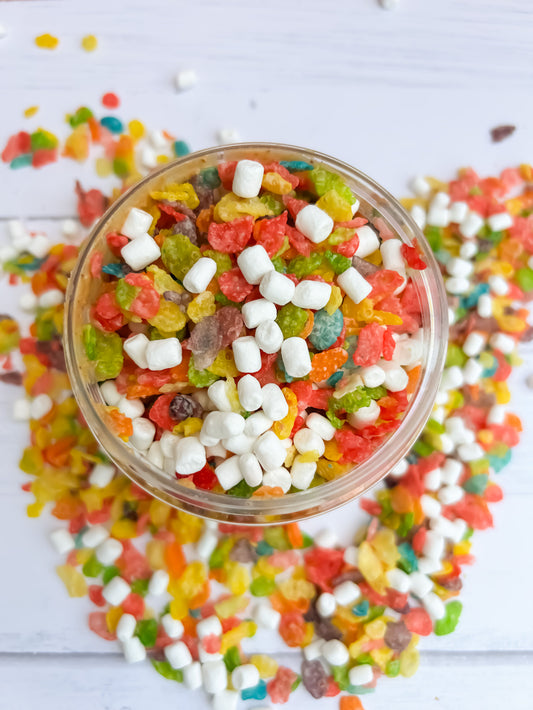 Prehistoric Pebbles- White Chocolate Peanut Butter with Marshmallow Creme, Fruity Pebbles & Mini Marshmallows
